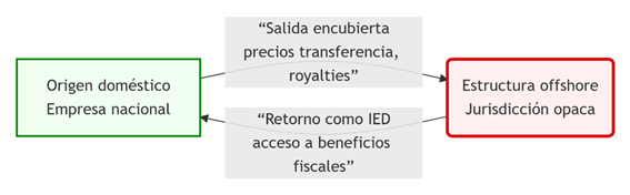 The analysis reveals that these flows configure specific morphologies of structural vulnerability. Some follow well-established patterns: binary flows operate as preferred structures in scenarios of interstate financial coercion; triangular flows function as surgical vectors of strategic legalization; and round-trip flows simulate foreign investment through circular capital circuits. Others adopt more disruptive forms: fractal flows act as amplifiers of systemic risk via nested leverage structures, while mirror flows are engineered as algorithms of transnational legal subjugation, designed to shield extraterritorial control under contractual disguise.