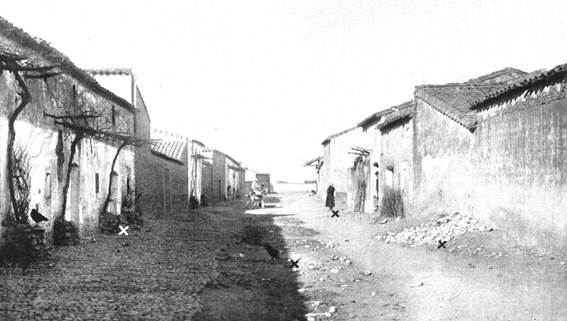 Castilblanco. Las aspas señalan el lugar donde quedaron los cadáveres: junto a