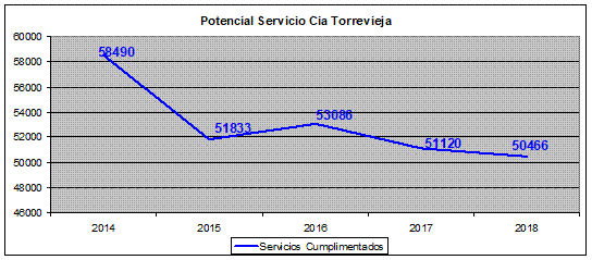 La Compañía de Torrevieja constituía, en el periodo analizado, una de las unidades de la Guardia Civil con mayor incidencia delincuencial registrada a nivel nacional, si bien, desde 2010 mostraba una tendencia descendente. La respuesta tradicional al incremento de la delincuencia había consistido en incrementar progresivamente la plantilla y, en época de mayor afluencia de personas e incremento delincuencial (verano), reforzar operativamente mediante unidades de reserva.
